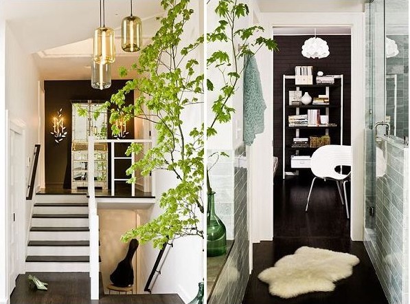 綠色植物在這個(gè)空間里很常見,在某個(gè)拐角,在某個(gè)過道,一個(gè)大棵綠色植物就會(huì)出現(xiàn)在我們面前。以簡約白色為墻面裝飾的空間里,綠色總是最好的點(diǎn)綴品。