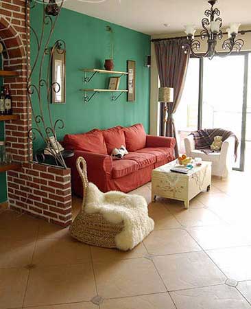 對(duì)比色具跳動(dòng)感,紅墻綠沙發(fā),強(qiáng)調(diào)了沙發(fā)的形狀,很跳但容易看膩,一般建議不能多用,只能使用在重點(diǎn)區(qū)域。