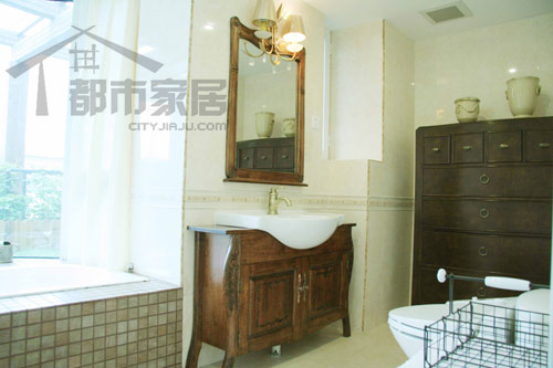 衛(wèi)浴間擔(dān)負(fù)著諸多現(xiàn)代化的實(shí)用功能,原本小編以為這里會(huì)是以簡約風(fēng)格為主導(dǎo),沒有太大的驚喜,但沒想到這里居然被中式風(fēng)格占了上風(fēng)!鏡子、浴室柜、收納柜統(tǒng)統(tǒng)都是古香古色的中式家具,不僅風(fēng)韻十足,實(shí)用性也毋庸置疑。設(shè)計(jì)師告訴小編這些家具都是從潘家園一帶淘回來的,業(yè)主很對(duì)此很是欣賞呢!