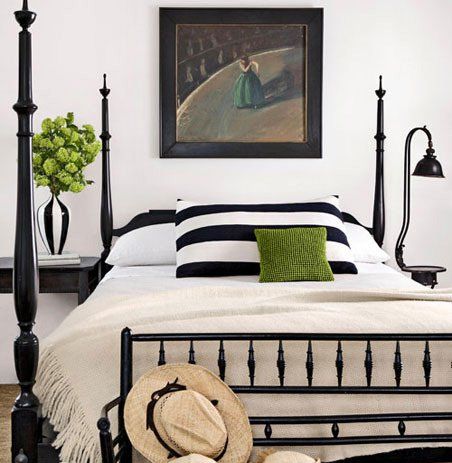 黑白配一直都是很經(jīng)典的搭配,黑色給人的印象是強(qiáng)硬和冷酷,這里的經(jīng)典黑白運(yùn)用,再一次將古典與現(xiàn)代的風(fēng)格結(jié)合的完好無損。白色壓陣,任由黑色演繹它獨(dú)有的風(fēng)尚底蘊(yùn)。值得一提的是,綠色植物的加入,給這個(gè)臥室?guī)砹舜笞匀坏奈兜?,骨子里散發(fā)著一股濃郁的鄉(xiāng)村之情,讓入住的人身心松弛愉悅。