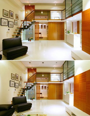 保留五米半的挑高視野,使用柚木格柵搭配實木、霧玻璃,透過格柵掩映及穿透的特性,變化虛實層次,讓垂直與水平視野饒富變化,空間感十足,洋溢舒適明亮的日式禪風(fēng)氛圍,心情也不由得敞朗起來。