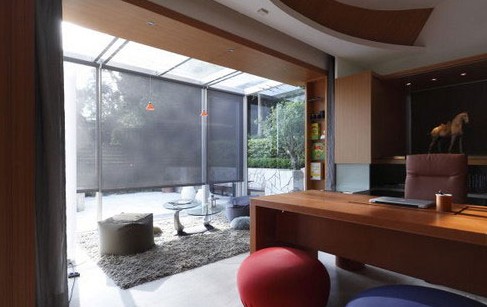 如果基地條件許可,不妨開天窗納入陽光,或是如本案贈送日光屋,添加休閑感。這棟擁有英式莊園外觀及魅力庭院的別墅,別具巧思延伸出一扇透明之窗,因日光休閑屋的存在,形成內(nèi)外相互借景,室內(nèi)后現(xiàn)代藝?yán)纫庀笈c戶外清新庭院造景相互凝望。