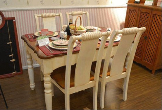 餐桌椅選用了水曲柳實(shí)木框架,實(shí)木腳,仿古白的色調(diào),顯得大方、自然,沒有矯揉造作。相當(dāng)程度上表現(xiàn)出其居住者的品位、愛好和生活價值觀。