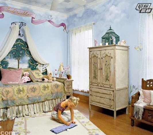 小女生都喜歡格林童話,看過美女與野獸的動畫片,都個小女生都期望有自己的城堡……歐式的家具,軟裝設(shè)計出復(fù)古感味十足的公主房,非常符合古來城堡的定義,為了更好的營造出這種氛圍,墻面的設(shè)計必然重要。精致的手繪墻更能讓公主房錦上添花,充滿無限美好的夢幻。