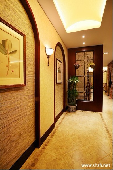 概要: 用花磚延長視線,這個走廊樸實(shí)無華,回歸走廊最本真特質(zhì),即連接室個各個空間的通道。質(zhì)地精良的仿古磚,溫暖的色澤讓人看去就非常舒服,同時可以把人的視線由遠(yuǎn)到近的領(lǐng)到玄關(guān)屏風(fēng)后面的景致。 典型的現(xiàn)代中式風(fēng)格,典雅秀麗又透著現(xiàn)代簡約的干練。這個樓梯口過道,是二樓通往三樓的樓梯過道。二樓的兩個功能間,都是大的套間,合理的分配是這個家的重要設(shè)計(jì)。