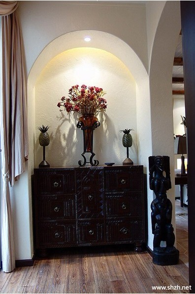 玄關(guān)這個(gè)詞的說法如果追溯淵它乃是指佛教的入道之門,但是現(xiàn)在這是我們常見家庭進(jìn)門的地方。玄關(guān)猶如一個(gè)家的門面,一個(gè)人出手的名片。它是家給人的第一印象,是精彩佳片的預(yù)告,也是濃縮精華的精彩呈現(xiàn)。玄關(guān)的裝飾就像一篇文章的開頭,可以平平敘述,漸入佳境;也可以迂回曲折,予人遐想。它寫景,它抒情,它可以是我們想要告訴他人的任何東西,也可能什么都不是,只是一個(gè)漂亮的開端與結(jié)束。