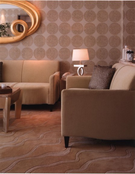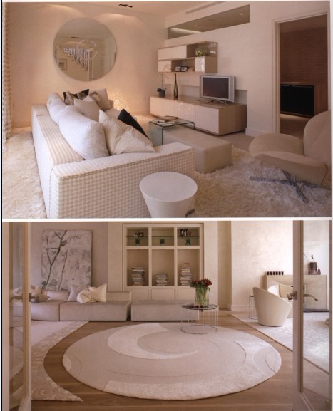 室內(nèi)的裝修是比較簡(jiǎn)單的,背景色十分素凈,但是很溫暖。溫馨彌漫,不管是沙發(fā)的材質(zhì)還是地毯的色澤,還是裝飾畫的選擇都以這個(gè)主旨在進(jìn)行。圓形的大塊地毯與半月型的地毯相稱,明明不是同一個(gè)系列卻做到了相輔相成。而它的圖案與裝飾畫的相呼應(yīng)。