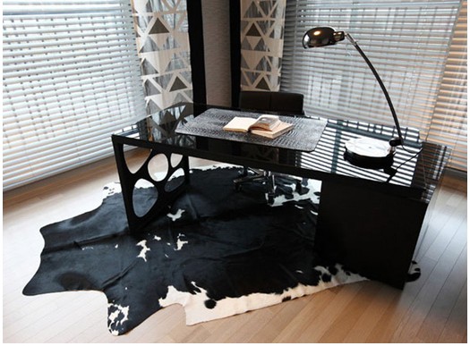 乳?;y地毯的黑白色和全屋裝修主題保持一致,淡咖啡色的地板為黑白陪添加了中庸的元素。書桌腳靠窗一面的鏤空設(shè)計(jì),不僅節(jié)省了家居生產(chǎn)的成本,弧形線條還能和室內(nèi)的直線,三角形線條相配合,給人以視覺(jué)的沖擊力。