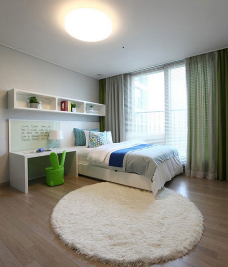 兒童房設(shè)計(jì)可謂是真正的清新淡雅,室內(nèi)色彩的點(diǎn)綴可增強(qiáng)兒童的想象力。充足的室內(nèi)光線是保證兒童眼部健康的首要元素,采光良好的落地玻璃窗能很好的吸取陽(yáng)光,而跳眼的綠色加入是為了保護(hù)兒童的視力,可以舒緩兒童眼部的壓力。藍(lán)色的加入調(diào)和室內(nèi)色彩,增加小清新元素。