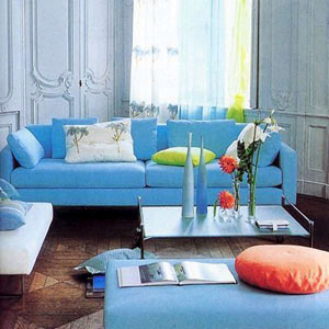黃、藍(lán)、紫和綠:意大利、法國(guó)南部有成片的向日葵和薰衣草花田,一片片金黃、藍(lán)紫的彩色花卉與深綠色樹葉相映襯,呈現(xiàn)出明亮漂亮的顏色組合。因此,在家飾、織品上,很容易看到自然色彩的反映。
