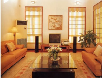 藤器、屏風、熱帶植物,再加上深棕色的木制茶幾和具有熱帶島嶼風景的掛畫、具有東方色彩的鑲玻璃掛飾,一個熱帶風情的居室呈現(xiàn)在眼前。為了調(diào)和冷色調(diào)的房間,只要擺放了多個色彩鮮艷的靠枕就可以了。