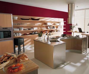 一般開放式廚房是指非封閉式的廚房隔間,也就是廚房空間與餐廳合二為一或與客廳空間相鄰而無任何門擋住的空間。現(xiàn)在已經(jīng)有越來越多的都市新貴們將自家的小廚房改造成了寬敞明亮的開放式大廚房。開放式廚房將是未來的發(fā)展趨勢,但也有它的弱點:首先,每日的三餐油煙,需要主婦們更加勤勞;其次,開放式的空間必然要求此廚房要與客廳的整體風格相統(tǒng)一,否則就會產(chǎn)生整體空間的不和諧。