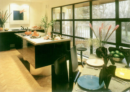 敞開式,理論上是將廚房與餐廳或客廳相連的一面非承重墻打掉,使廚房與餐廳合二為一。由于東方人的飲食習(xí)慣與西方人有較大區(qū)別,因此,設(shè)計師對敞開式廚房作了有中國特色的改造。如用一面玻璃磚墻加以分隔,既保證了油煙不外散,又可利用玻璃磚墻打造透光和折射光線的效果,使內(nèi)外都感覺到明亮和通透。