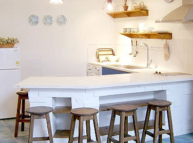 此外,吧臺或上下吊柜也都具有收納功能,一般吧臺可兼做早餐臺,高度以85公分最佳,用一般座椅即可,此吧臺還可當工作臺使用;超過100公分的吧臺,就需要使用高腳凳,不過,收納功能相對較強;吊柜也可做成有門片的雙面式或?qū)影迨?,可收納雜物,層板可放餐杯或咖啡杯、酒杯等裝飾性的餐具。