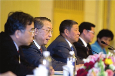 教育部副部長章新勝(左二)回答記者提問 記者周民攝