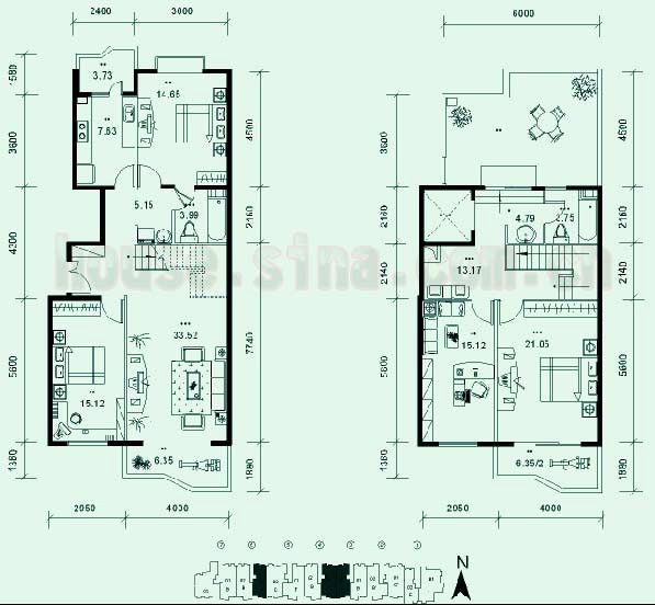 5、充分體現(xiàn)了躍層結(jié)構(gòu)的優(yōu)點(diǎn);上下兩層不同的空間分布使主人更自由的布置自己的家居生活,使主人擁有兩個(gè)特點(diǎn)完全不同的空間,卻又結(jié)合在一起