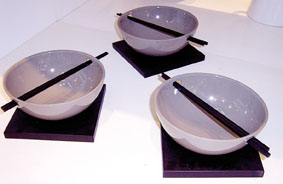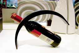 在由澳大利亞設計師Stevenrodis為首席設計師的家飾用品專賣店平米家居里,記者就發(fā)現了許多匠心獨具的新穎廚房家飾品。酒瓶用一個弧形的木制瓶托斜撐著,酒瓶與瓶托呈現出獨特的造型美。幾個面碗和水杯兩邊出現了古希臘戰(zhàn)士頭盔造型的邊兒,既是裝飾,又有防止燙手的功能。另一種面碗是木制的,碗邊上設計了擺放筷子的凹邊,正好放一雙筷子,特別適合單身貴族和青年情侶偶爾在家給自己做點面條時用。當然了,造型如此時尚的碗筷不吃飯時放在桌上也可以做裝飾品。另一個遠看像花瓶的容器,近看才發(fā)現,原來是一個不銹鋼架子上面疊放著同樣式和同大小的咖啡杯,下面疊放著和咖啡杯相配的杯墊。這樣的設計既節(jié)省空間,造型又獨特,還可以做裝飾品,真是集功能性、裝飾性與藝術性于一體的設計作品。