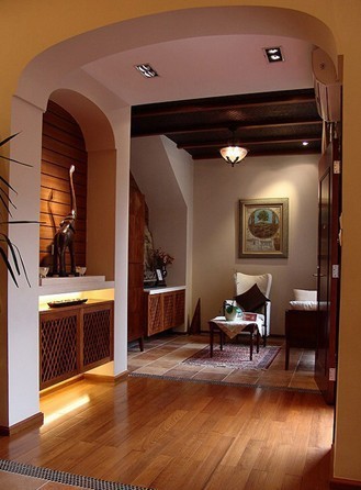 2、吸取了其風(fēng)格的“形神”特征,在設(shè)計(jì)上追求空間變化的連續(xù)性和形體變化的層次感,室內(nèi)多采用帶有圖案的壁紙、地毯、窗簾、床罩、帳幔及古典裝飾畫(huà),體現(xiàn)華麗的風(fēng)格。