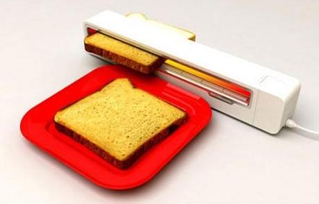 把鬧鐘的外形做成攪拌器的樣子,在杯中放入許多塑料小球。時間一到,攪拌器自動開啟,攪動里面的塑料球,發(fā)出刺耳的聲音。多懶惰的懶蟲相信也會被這刺耳的聲音叫醒。 掃描面包 新型烤面包機(jī)