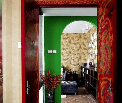 概要: 想要家具有視覺沖擊力,又不想使用慣常的單色重涂,不如就來個(gè)徹底的沖撞——紅與綠,大俗的色彩,卻又是最民族的色彩,包含了太多的色彩語匯與寓意,沒有比它們更適合的色彩了。一路傾瀉下來,處處濃墨重彩。門廊、客廳、臥室,甚至連衛(wèi)生間都不放過,紅色依綠色而明媚,綠色依紅色而濃郁,到處閃亮青春的熾熱與無忌。