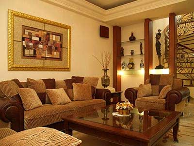 背陰的客廳忌用一些沉悶的色調(diào)。由于受空間的局限,異類的色塊都會(huì)破壞整體的柔和與溫馨。宜選用白櫸飾面,楓木飾面啞光漆家具,淺米黃色柔絲光面磚,墻面采用淺藍(lán)色調(diào)試一下,在不破壞氛圍的情況下,能突破暖色的沉悶,較好地起到調(diào)節(jié)光線的作用。