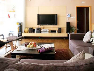 用飾面板做電視背景墻,可選擇的花色很多,完全不用擔心與居室無法搭配的問題,一般只需六七十元一張。