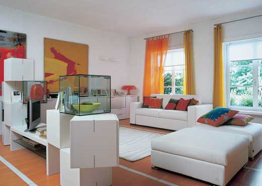 現(xiàn)今,有很多戶型不大、空間卻夠大的居室,如果曾感到對過于通透的空間無從下手,請借鑒以下的空間構(gòu)造法?! ≡诠潭ㄐ螤畹目臻g里,可以使用自由拆分組合的家具或隔斷,將一個空間分化成幾個空間,把想藏的藏起來,平時居住時是一種樣子,有客來時又可以變換另外一種面貌,非常方便。要知道,只要你愿意,家,就可以總是在變化當(dāng)中,充滿彈性和活力。