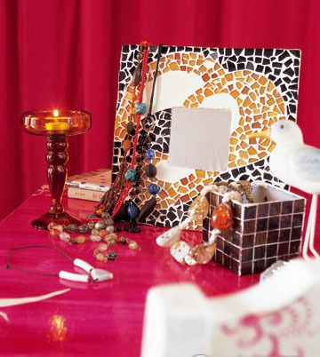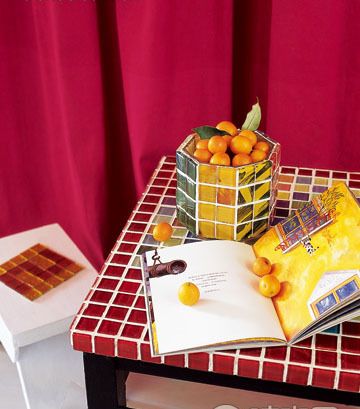 透明的馬賽克可以用來(lái)做燭臺(tái),因?yàn)闋T光能夠透過(guò)馬賽克朦朦朧朧灑出來(lái),又不似透過(guò)普通玻璃那樣直白。還有實(shí)用的紙巾盒、花瓶都可以用馬賽克來(lái)制做,一樣的餐桌不一樣的風(fēng)情。