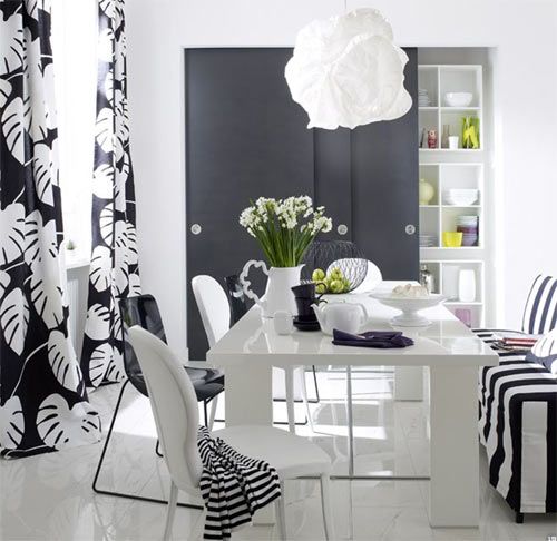 白色的簡單純凈怎樣演譯出經(jīng)曲風(fēng)范?別擔(dān)心,MIX點黑色如何?黑白色的經(jīng)曲搭配是時尚辦永不過時的話題。要注意的是:黑色一定要局部適量應(yīng)用,才不會搶了白色餐桌的風(fēng)頭。