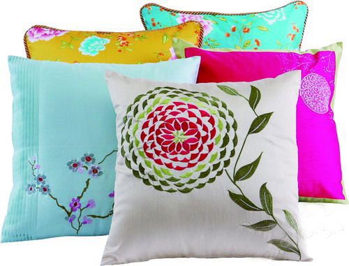 團花、梅蝶、翦梅、花鳥等中國元素圖案配以桃紅、鵝黃、淺金、湖藍等底色,運用精美的玻璃紗銀絲貼繡工藝和特殊的燙鉆工藝,具有中國風(fēng)特色的抱枕是這一季主打,柔滑的紡絲材質(zhì)色澤清新艷麗,不易脫絲,便于保養(yǎng)。
