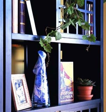花瓶內(nèi)也許不一定是花,絲巾的質(zhì)感如同花瓣,與生動的綠色植物搭配相得益彰,為厚重的實(shí)木書架增添了女性嫵媚。