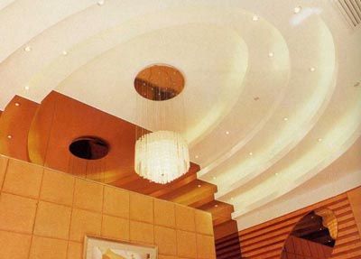 假天花為遷就屋頂?shù)臋M梁而壓得太低,無論在風(fēng)水方面或設(shè)計(jì)方面均不宜。在這種情況下,可采用四邊低而中間高的假天花布置,這樣一來,不但視覺較為舒服,而且天花板中間的凹位便會(huì)形成聚水的天池,對(duì)住宅風(fēng)也會(huì)大有裨益。