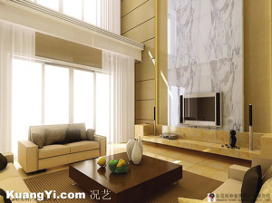 ▲大理石裝飾的電視背景墻,搭配挑空的大客廳,給人以豪華、大氣之感。