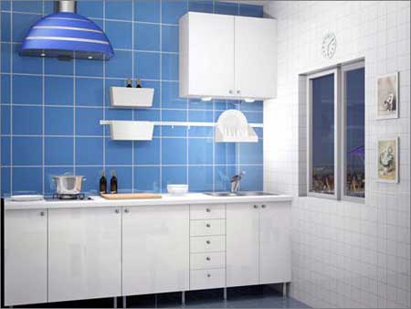 最理想的色調(diào)是單色調(diào)、淺色系,白色、淺灰色或明亮的奶黃色、淺藍(lán)色等都是不錯的選擇。不但明快,而且有擴(kuò)大空間感的效果。出現(xiàn)在封閉式廚房里的色彩,通常是裝飾般的小點(diǎn)綴,如在護(hù)板設(shè)計(jì)上,用一條色彩艷麗的瓷磚,或一些小馬賽克,來激活略顯平淡的空間。