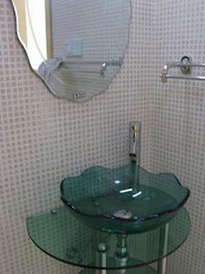 一定要與洗面臺和浴室其他設(shè)施相配套。如玻璃面盆與金屬臺面和木質(zhì)臺面乃至玻璃臺面搭配都比較協(xié)調(diào),若與石材搭配就略顯突兀。