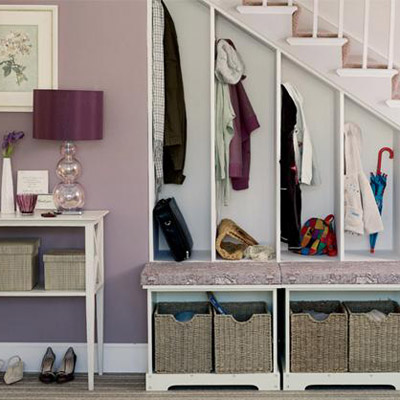 不要浪費(fèi)樓梯底下的空間哦~給家里的每個(gè)人在這里布置一個(gè)小隔間,可以掛上自己的衣服,或者存放些個(gè)人的小物品。樓梯的層次高度正好合適分別放孩子和大人的衣服,而且高度孩子們也都?jí)虻闹?