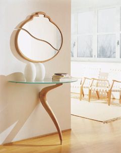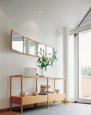 墻面上掛一面造型新穎的鏡子,既可擴(kuò)大視覺空間,又可在出門前整理妝容。不過,鏡子與矮柜在設(shè)計(jì)上應(yīng)相互呼應(yīng),還可根據(jù)需要調(diào)整角度;另外,比如別致的相架、精美的座鐘、古樸的瓷器等都是不錯的選擇。
