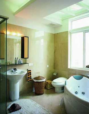 衛(wèi)生間的設(shè)計(jì)基本上以方便、安全、易于清洗及美觀得體為主。由于衛(wèi)生間的水氣很重,內(nèi)部裝潢用料必須以防水材料為主。浴室的墻壁和天花板所占面積最大,所以應(yīng)選擇既防水又抗腐蝕和防霉的材料來確保室內(nèi)衛(wèi)生,瓷磚、強(qiáng)化板和具防水功能是塑料壁紙都能達(dá)到這些要求。天然石料如大理石則具有特殊的質(zhì)感,但可異在狹小的衛(wèi)生間內(nèi)發(fā)揮不了效果。