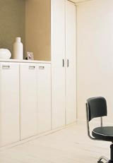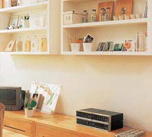 如果有大量的CD和書(shū)籍、錄像帶等物品,最好事先根據(jù)這些物品的具體形狀和數(shù)量,來(lái)制定適當(dāng)?shù)目臻g規(guī)模。定做尺寸相當(dāng)?shù)臄R板或收納柜,可以避免空間的浪費(fèi)。而且,整理起來(lái)有條不紊,視覺(jué)上也整潔許多。