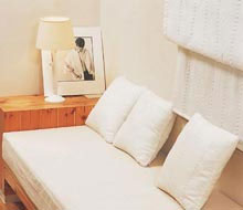 在客廳里可以試著放置沒(méi)有靠背的沙發(fā)。將沙發(fā)做成長(zhǎng)而窄的形狀,然后放幾個(gè)靠墊當(dāng)成靠背就可以了。這種沒(méi)有靠背的沙發(fā),可以使房間面積感增大,而且也有多種不同的用途,是個(gè)不錯(cuò)的創(chuàng)意。
