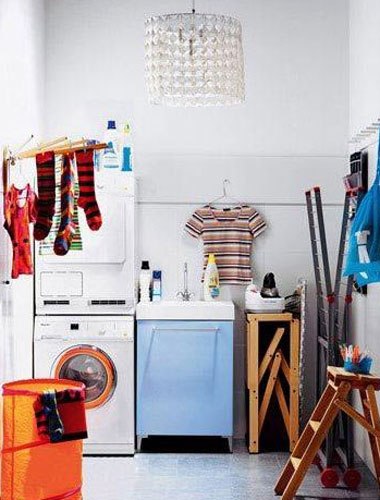 “家庭洗滌中心”的概念正在流行,獨立的洗衣房成為家里全新的空間。洗衣機和干衣機組合,讓洗衣這項家務勞動變得更加專業(yè)。臟衣筐、晾衣架、熨衣板也有了棲身之地。在墻面上安裝一些衣架,小件衣服就可以晾在這里,避免其他空間的雜亂和擁擠。