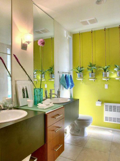 色彩的搭配:衛(wèi)生間的色調(diào)要柔和飽滿,一天的心情從洗漱開始,案例中黃綠搭配的效果,還有墻壁上的透明花盆裝飾的綠色植物,讓衛(wèi)生間也有生機(jī)。