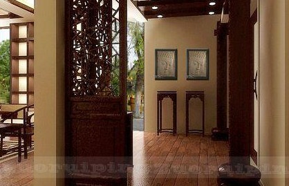由于客廳具有多功能性且面積大, 通常在設(shè)計功能區(qū)域劃分時采用隔斷形式。通常采用的形式有 [1]木柜隔斷,[2]藝術(shù)屏風(fēng)隔斷,[3]花格式隔斷,[4]地臺式隔斷, [5]天花造型分格,[6]利用天花燈光照明強(qiáng)弱分格等。