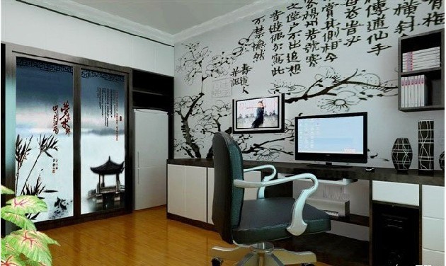 書房要求具有使人寧靜的祥和氣氛與提高工作效率的功能。而且,它也不像客廳、餐廳那樣需要展現(xiàn)某種風(fēng)格。所以,在壁面使用上,也可以趨向較為私密的喜好設(shè)定。例如,你是個喜歡搜集海報、明信片的人,卻苦于沒有機(jī)會將它們展示出來,那么,書房即使最佳的陳列地點。