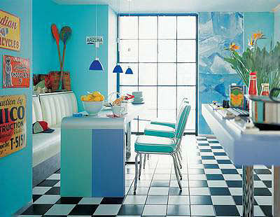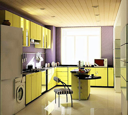 廚房的墻面必須以實用為主,但新型材料的出現(xiàn)為其裝飾功能奠定了基礎。在能解決油煙的前提下,你可以嘗試使用涂料和墻紙,它們色彩艷麗,花紋豐富,一改廚房墻壁單調(diào)的局面。這時選擇的涂料墻紙要有很好的耐擦洗性和多層覆蓋性。在水池和灶臺附近,可以用玻璃、金屬等合成材料制作的隔油層釘在墻上。