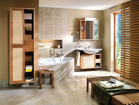 概要:  在鄉(xiāng)村風日益流行的今天,我們的衛(wèi)浴空間需要融入曼妙的田園色彩,那種輕松、不雕琢的感覺才適合放松全身?! √飯@風格的衛(wèi)浴空間比較大,招牌特點就是盡可能選用木、石、藤、竹、織物等天然建筑材料,如墻上的護墻木板、天花板上的木橫梁,都會給浴室增添一種溫馨的、起居舒適的感覺。如何通過簡單的布置,就能成就一個充滿田園味道的衛(wèi)浴間呢。