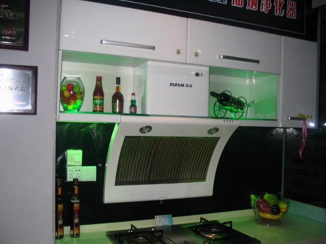 通風(fēng)是保證室內(nèi)衛(wèi)生的重要條件,也是保證人身體健康、安全的必要措施。排風(fēng)扇、排氣罩、抽油煙機(jī)一般安裝在煤氣灶上方0.7米,最好不要選擇外觀漂亮的超薄平板式抽油煙機(jī),因?yàn)樗某橛蜔煓C(jī)能力太弱。最好選擇深罩型抽油煙機(jī),這類機(jī)型設(shè)置了較深的集煙罩。當(dāng)風(fēng)機(jī)高速運(yùn)轉(zhuǎn)時(shí),集煙罩上方會(huì)容納來不及吸走的油煙,從而消除大量油煙擴(kuò)散現(xiàn)象。抽油煙機(jī)的造型、色彩應(yīng)與廚房的造型、色彩相統(tǒng)一。與客廳、臥室相連的敞開式廚房要搞好間隔,可以吊柜、立柜做間隔,裝上玻璃推拉門,盡量使油煙不飄入內(nèi)室,污染室內(nèi)空氣,影響家人健康。