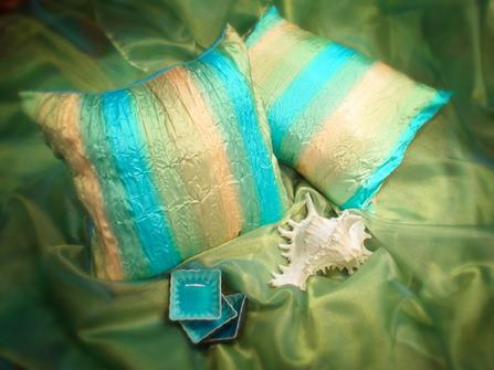 2、色彩的使用最好多樣化,至少使用2~3款厚厚色彩布藝重疊在一起營造出鮮明、獨特的效果。