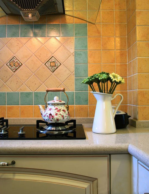 此套案例又可稱作美式鄉(xiāng)村風(fēng)格,我們通常稱之為田園風(fēng)格;廚房的面積較大,操作方便、功能強(qiáng)大。富有鄉(xiāng)村特色的墻面磚,韓式田園風(fēng)味的水壺,白晰的花瓶,條紋清晰的櫥下柜,干凈簡單的田園風(fēng),這類風(fēng)格越來越多人的喜歡,但是這類風(fēng)格對(duì)室內(nèi)面積有一定要求,一般小戶型很難做到要求。
