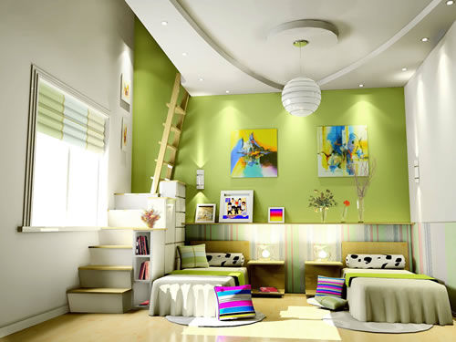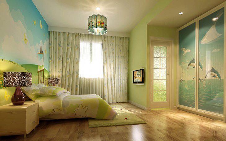 蘋果綠系列兒童房裝修效果圖,綠色清晰,